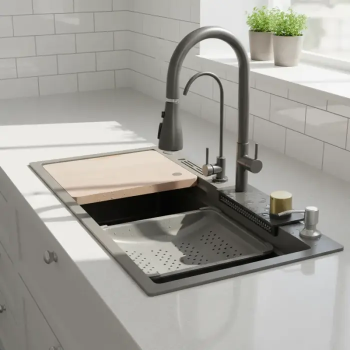 Bacha / Fregadero de Cocina Multifuncional Premium con Accesorios Integrados