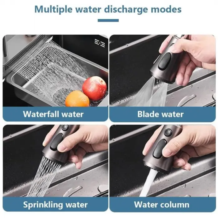 Incluye una grifería principal extensible multifunción con cuatro modos de descarga: