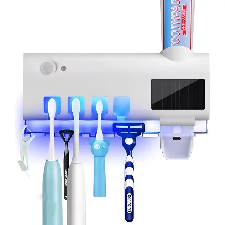 Mantén tu rutina de higiene más práctica y segura con este dispensador de pasta con esterilizador UV, diseñado para proteger los cepillos de dientes y mantenerlos siempre limpios y listos para usar.