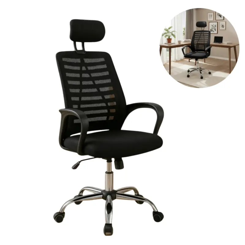 Silla de Oficina Ergonómica con Soporte de Cabeza – Color Negro
