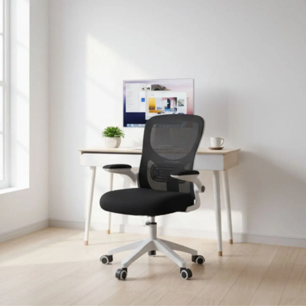 Mejora tu comodidad y productividad con esta moderna silla de oficina ergonómica, diseñada para brindar el soporte adecuado durante largas jornadas de trabajo, estudio o uso diario en casa. Su estilo contemporáneo en color blanco la convierte en el complemento perfecto para cualquier espacio, aportando un toque elegante y profesional a tu oficina, home office o área de estudio.